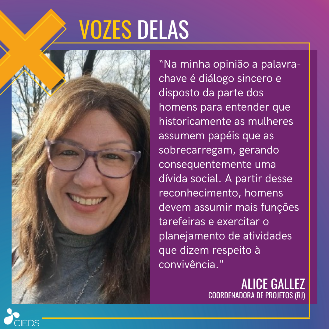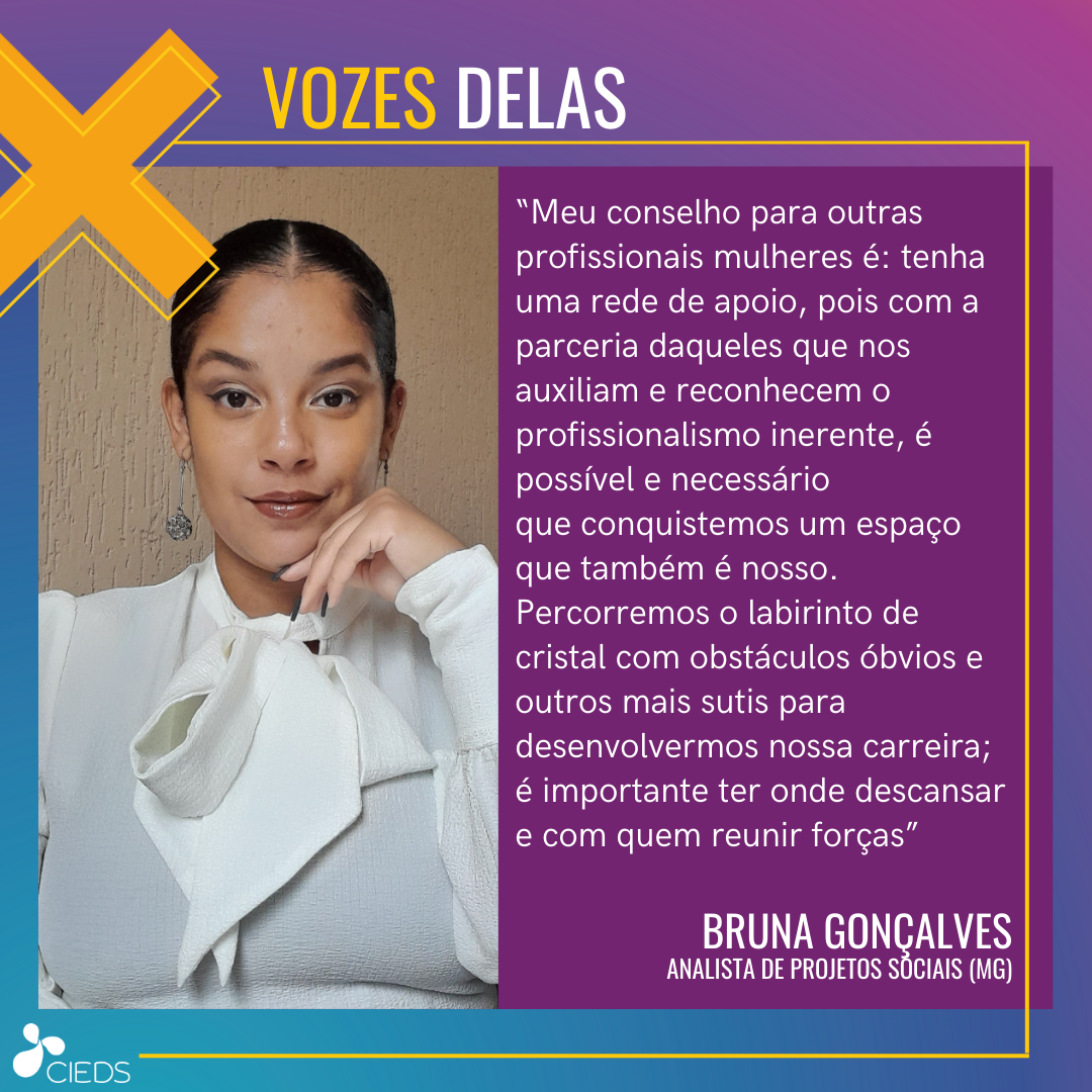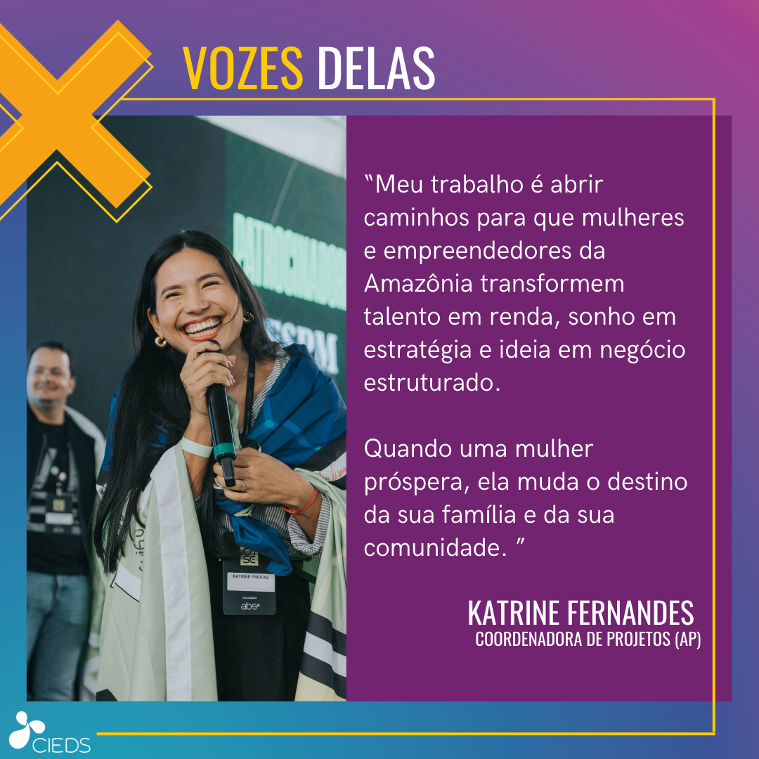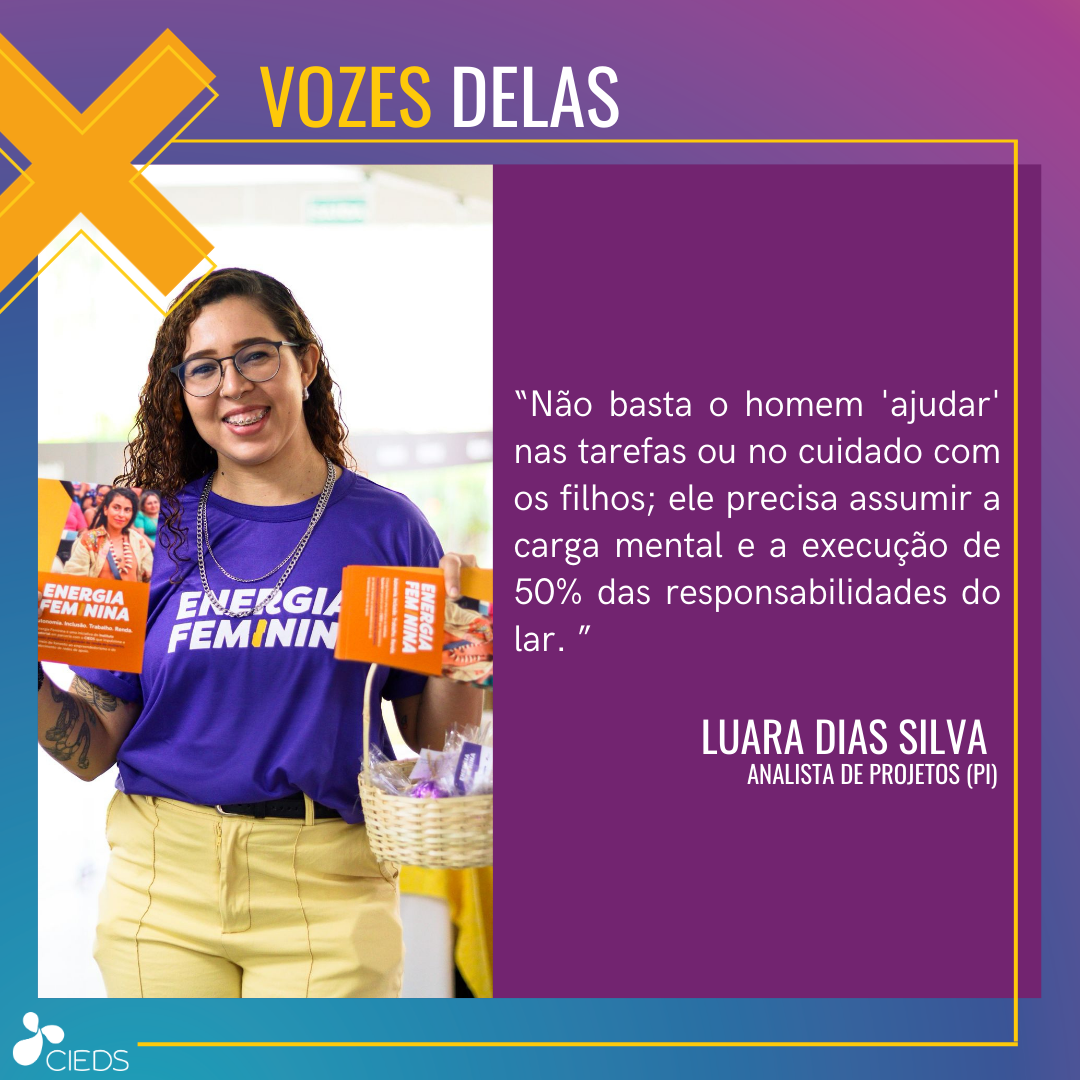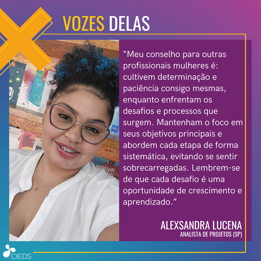 No CIEDS, as mulheres são 63% entre as pessoas colaboradoras, 58% entre as pessoas gestoras e 49% entre as pessoas diretamente atendidas pelos nossos projetos. Do entendimento de que ainda há muito para avançar e que isso começa pela cultura organizacional, nasceu a campanha “Vozes Delas”, com o objetivo de dar protagonismo e amplificar as vozes das mulheres que fazem parte do CIEDS.