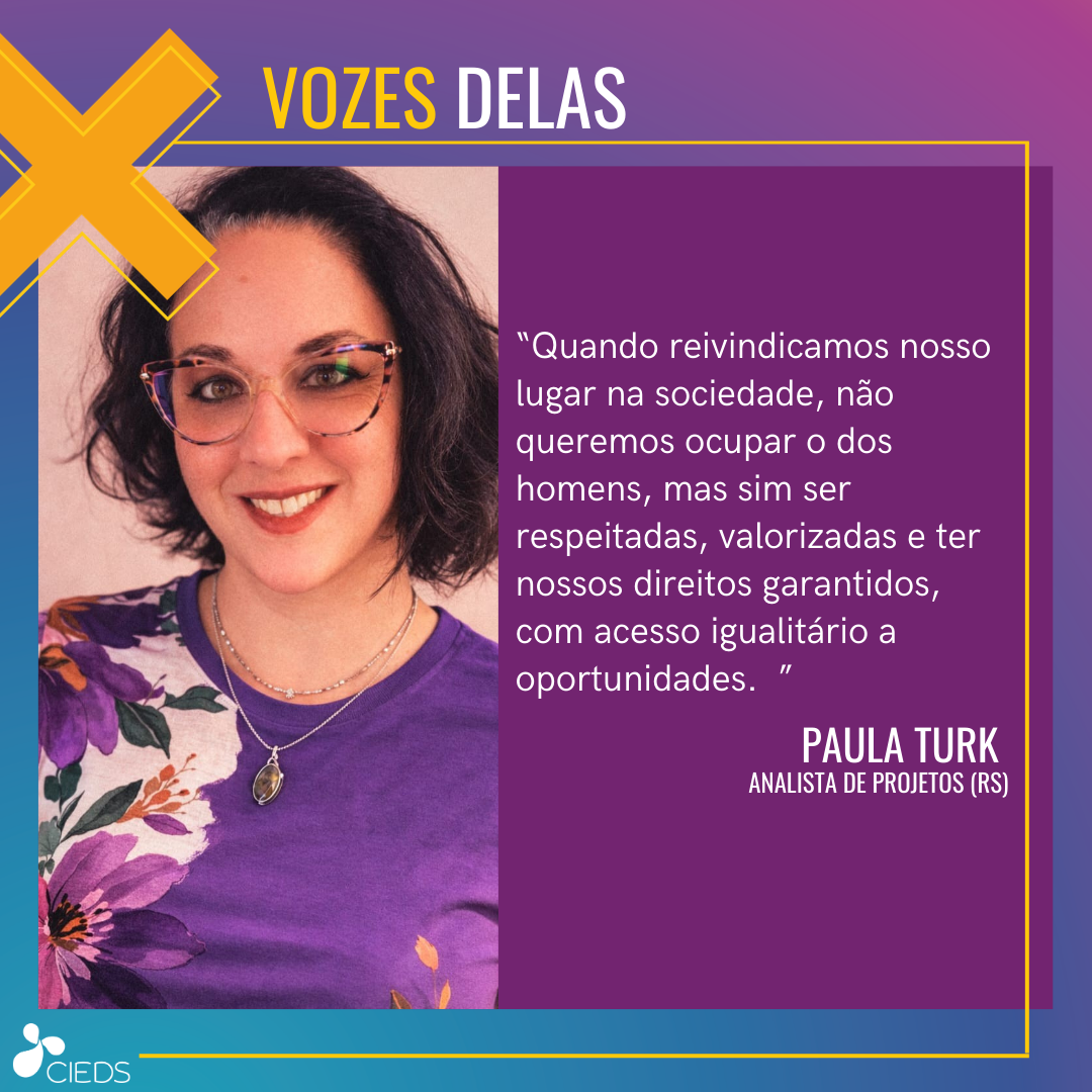 “Quando reivindicamos nosso lugar na sociedade, não queremos ocupar o dos homens, mas sim ser respeitadas, valorizadas e ter nossos direitos garantidos, com acesso igualitário a oportunidades.”